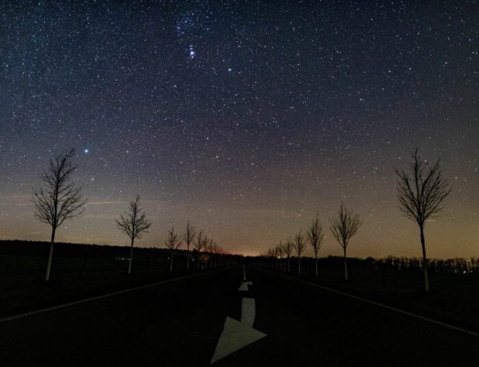 Im Nordosten leuchtet die helle gelbliche Kapella im Fuhrmann. Der Große Wagen rollt tief am Nordhimmel den Horizont entlang während die Kassiopeia, das Himmels-W, hoch im Osten eben emporsteigt.