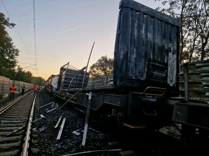 Am Dienstagmorgen hatte der Triebwagenführer seinen Güterzug auf dem Weg von Rotterdam nach Lehrte gestoppt. Laut Bundespolizei hat er einen Lichtbogen gemeldet, außerdem war die Oberleitung auf das Gleis gefallen. Ein Waggon habe Feuer gefangen und es habe die Gefahr bestanden, dass die Flammen auf benachbarte Waggons überspringen. Das habe die Feuerwehr verhindert.