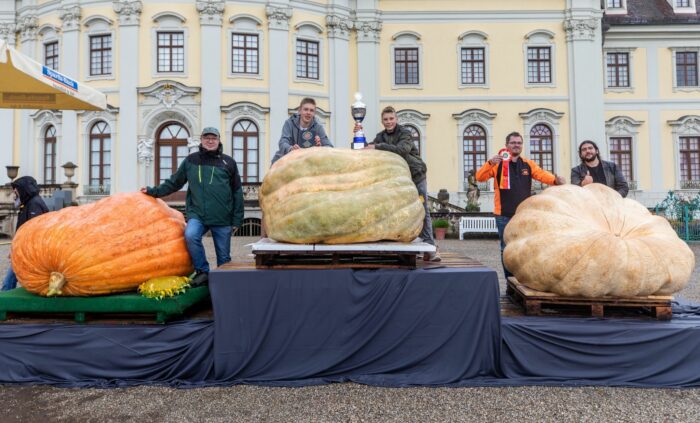 Züchter Cutrupi aus Radda in Chianti (Italien) hatte im vergangenen Jahr mit einem 1226 Kilogramm schweren Kürbis bereits einen Weltrekord aufgestellt. Zur Europameisterschaft in diesem Jahr reiste er mit drei Kürbissen an, von denen einer in die Wertung einging. Auch die diesjährigen deutschen Meister Jakob und David Frommelt aus Erkheim (Bayern) waren beim Wiegen mit dabei. Die Brüder sind mit 15 und 17 Jahren die jüngsten deutschen Titelträger im Kürbiszüchten, sie belegten mit 789,5 Kilo den dritten Platz in der Kürbis-Wertung.