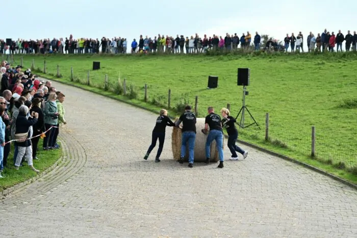 Die Teams mussten einen rund 300 Kilo schweren Strohballen über eine 80 Meter lange Strecke in möglichst kurzer Zeit einen Deich hochrollen, mit dem Ballen einen Slalom-Parkour meistern und eine 80 Meter lange gerade Strecke zurücklegen. Ziel in allen drei Disziplinen war, in einer möglichst kurzen Zeit ins Ziel zu kommen. «Die Stimmung ist super, die Menschen fiebern mit und feuern an. Die Teams sind dadurch noch motivierter und rollen noch schneller», erzählte Habben.