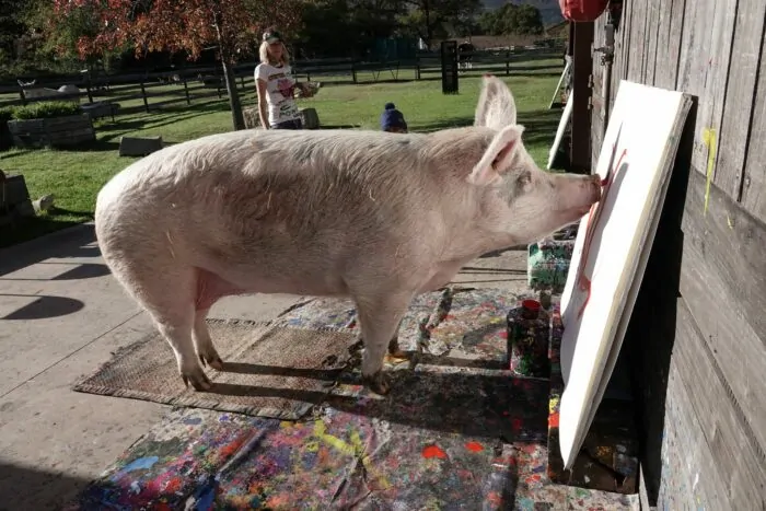 Pigcasso ist nicht das einzige Tier mit künstlerischem Talent. In den USA malt beispielsweise Labrador-Golden-Retriever-Mischling DogVinci Bilder für gute Zwecke. In Thailand leben im Thai Elephant Conservation Centre in der Nähe der nördlichen Stadt Chiang Mai malende Elefanten. Im Zoo von Denver in Colorado brachte einst ein Spitzmaulnashorn namens Msindhi Farbe zu Papier. Im Hakkeijima Sea Paradise Aquarium in Yokohama, Japan, wurde ein malerisch kreativer Beluga-Wal weltbekannt.