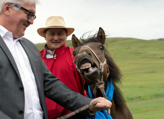 Wer als Staatsgast in die Mongolei reist, bekommt schon mal ein ganzes Pferd geschenkt. So passierte es auch Frank-Walter Steinmeier bei einem Besuch vor rund zehn Jahren – damals noch als Außenminister. Das junge Pferd wurde auf den Namen «Donnernde Hufe» getauft und blieb in dem ostasiatischen Land, als sein neuer Besitzer nach Deutschland abreiste.