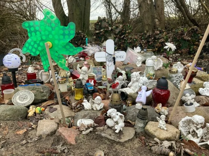 Die grausame Tat soll sich in einem Gebüsch am Bolzplatz in dem kleinen Dorf in Mecklenburg-Vorpommern ereignet haben. An dem Ort, an dem Joel gestorben ist, stehen auch Monate später noch Engelsfiguren, Erinnerungsstücke und ein größeres Kreuz.