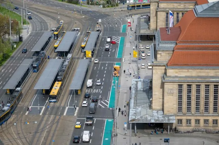 Kurzer Radweg, große Diskussion: Seit Wochen wird in Leipzig um einen grünen Fahrstreifen vor dem Hauptbahnhof gestritten. Radfahrer haben dort im April einen neuen Weg bekommen – auf Kosten von Autospuren. Die Maßnahme war Teil eines Konzepts, mit dem die Stadt unter anderem die Sicherheit erhöhen wollte. Doch das Projekt stieß auf Widerstand. Wirtschaftsverbände protestierten, eine Petition wurden gestartet. Bislang hält die Stadt am Radweg fest.