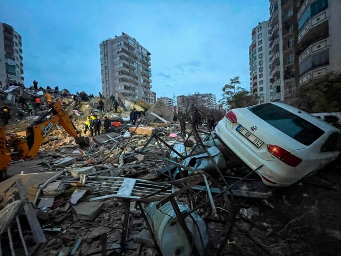 Im Morgengrauen, als Regen, Schnee und kalter Wind über die Region ziehen, wird das Ausmaß der Zerstörung sichtbar. Geologische Institute verzeichnen eine Erdbebenstärke von 7,7. Das Epizentrum lag nach Angaben der türkischen Katastrophenschutzbehörde Afad in der Provinz Kahramanmaras nahe der syrischen Grenze – mit Dutzenden Nachbeben. Im Lauf des Tages erschüttert ein weiteres Beben der Stärke 7,5 die Südosttürkei.