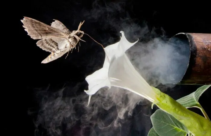 Die Wissenschaftler haben nun speziell die Auswirkungen von Ozon und dem NO3-Radikal auf die nächtliche Bestäubung der Nachtkerze (Oenothera pallida) durch Nachtfalter (Hyles, Manduca) im US-Bundesstaat Washington untersucht. Es wurde festgestellt, dass Nachtkerzen einen starken Blütenduft abgeben, der viele Bestäuber anzieht. Insgesamt wurden etwa 300 Blüten über einen Zeitraum von 200 Stunden beobachtet. Darüber hinaus wurden die einzelnen Bestandteile des Duftes, ihre jeweilige Wirkung auf die Nachtfalter sowie ihr Abbau durch Ozon und das NO3-Radikal analysiert.