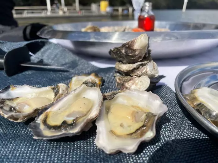 Der Verzehr von Austern ist auch der Höhepunkt von Beaumonts Tour: Die Gäste knacken frische Austern und essen sie mit etwas Zitronensaft, dazu gibt es ein Glas Sekt. «Wir sind an dem Punkt angekommen, an dem pro Wochenende etwa 400 Leute kommen, das ist unglaublich», erzählt die Austernzüchterin.